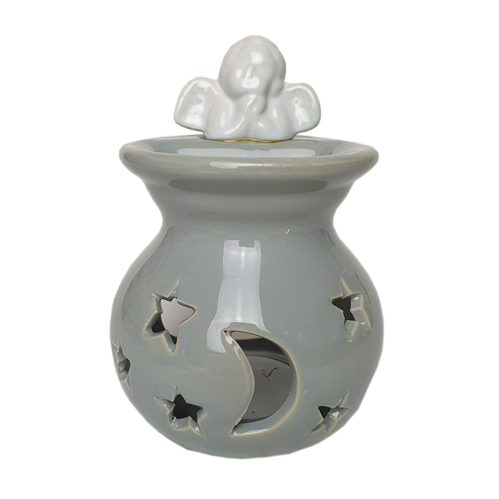 Erwecke deine Lieblingsdüfte mit diesem grauen Duftbrenner mit Engelsmotiv zum Leben! Lass Glitzer erstrahlen und verwandle dein Zuhause mit deinen Lieblingsdüften.