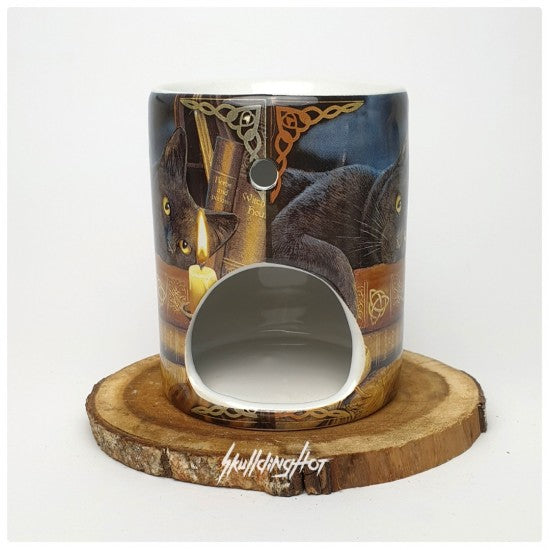 Der Duftbrenner „Hexenstunde“ ist rundum bedruckt. Er ist verziert mit magischen Büchern voller Zaubersprüche, Rezepte und geheimer Kräfte sowie einer wunderschönen, wachsamen schwarzen Katze. Holen Sie sich Magie in Ihr Zuhause und vervollständigen Sie Ihre Einrichtung mit diesem Duftbrenner!