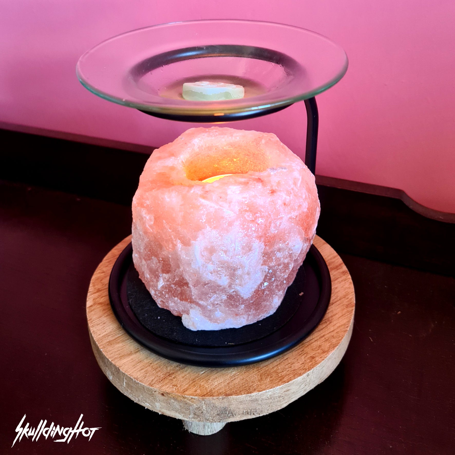 Stap binnen in een wereld van betovering met deze zoutsteen geurbrander! Deze prachtige grote brander is gegarandeerd een eyecatcher in je interieur en door zijn formaat ideaal voor grote ruimtes. Niet alleen creëert het een magische sfeer met zijn warme gloed van de steen, maar het wordt ook gezegd dat zoutsteen de lucht zuivert. Het glazen schaaltje op de metalen houder maakt deze geurbrander helemaal af, om optimaal van de glitterende waxmelts te genieten.